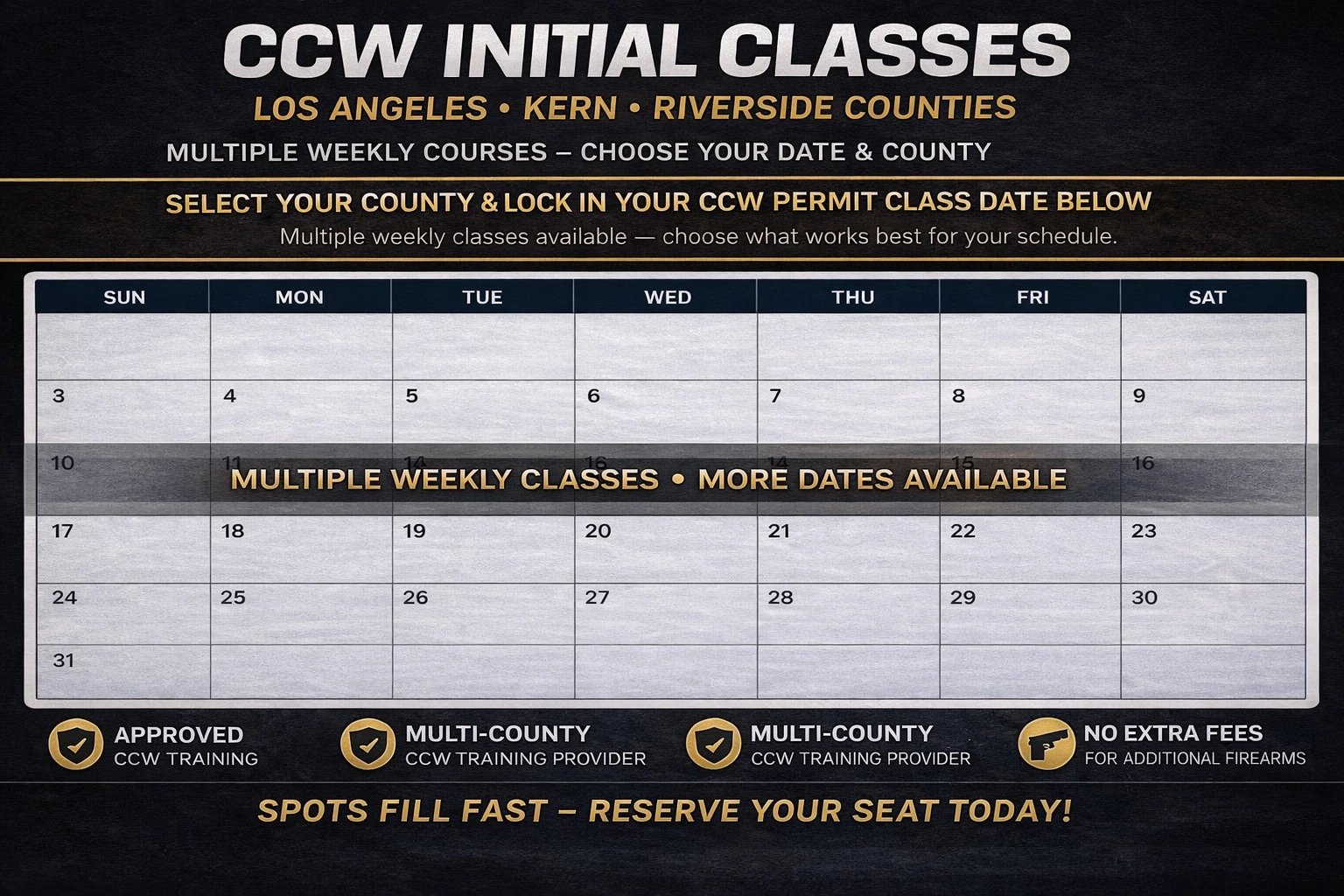 This is a California-compliant, Riverside County and Los Angeles County APPROVED CCW training course that meets all state requirements.