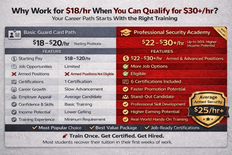 The Security Officer Academy is designed for people who want more than just a certificate — they want a career pathway.
